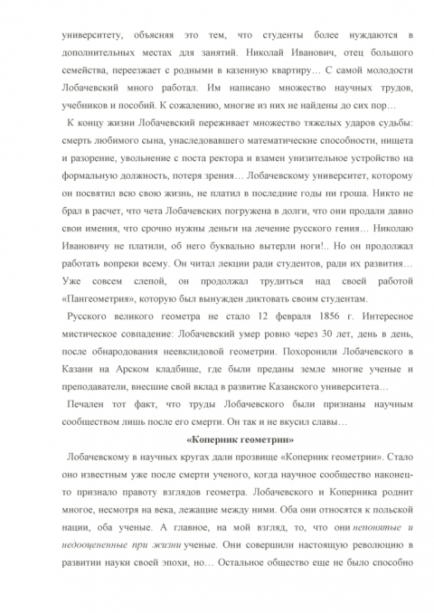 Собрать материал о Лобачевском, оформить в виде исследовательской работы. Оценить его вклад в дальнейшее развитие не только математики, но и других сопутствующих наук.