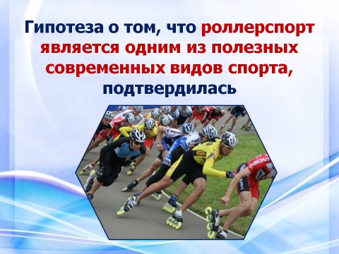 Таким образом, наша гипотеза о том, что роллерспорт является одним из полезных современных видов спорта, подтвердилась!