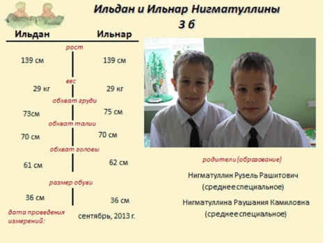 Результаты исследования полностью подтвердили гипотезу, что даже близнецовые пары, имеющие одинаковую внешность, могут отличаться по многим параметрам (физическому развитию, интересам, увлечениям). Проведенные исследования показали, что каждый из них является индивидуальностью со своими особенностями характера.