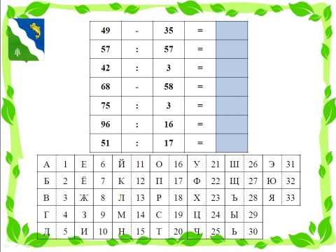 Чтобы решить числовой кроссворд, надо найти значения выражений в каждой строке. Пользуясь числовыми значениями букв из таблицы, заменить каждое число в цветных клетках соответствующей буквой и узнать фамилию заслуженного художника России, который проживал в Балахтинском районе.