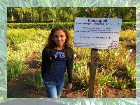 В сентябре 2013г. Мы отправились на экскурсию в Ботанический сад. Лаборатории интродукции и селекции цветочных растений и дикорастущей флоры и интродукции травянистых растений содержит 13 участков в зависимости от рода и вида растений. Территория сада разделена на огороженные участки, в зависимости от культивируемых на них растенияй. Возле входа на каждый участок установлена табличка с названием и именем ответственного ученого. Мы побывали в сирингарии, иридарии, розарии.