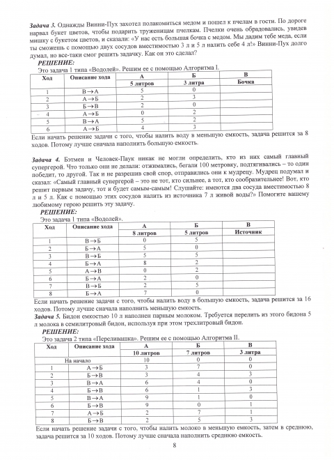 Экспертная оценка что это? На уроке математики нам задали решить задачу на переливание. С ней справились не все ребята, а некоторые ребята, решив ее , не смогли представить решение, так как не знали, как это сделать. Я занялась вопросом изучения способов решения задач на переливание, с целью выбора оптимального способа. Я составила сборникиз 10 задач с разными данными, чтобы вывести закономерности. Задачи решила табличным способом и способом бильярдного шара, выявила плюсы и минусы данных способов решения задач, выбрала универсальный способ, которым лучше решать задачи на переливание - способ бильярдного шара, так как он не только позволяет легко найти решение, но и установить, что задача не имеет решения. В работе представлены алгоритмы решения задач в зависимости от типа задачи: "Переливашка" или "Водолей". Выполнив исследование, я представила его результаты одноклассникам, которые теперь могут решить задачи на переливание. А я не только с легкостью решаю задачи на переливание на олимпиадах и конкурсах, но и, не имея под рукой емкостей нужных объемов, могу отмерить нужное количество жидкости.
