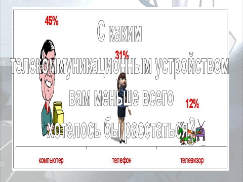 Многое из того, что привнес в нашу жизнь ПК, стало для нас привычным и воспринимается как данность. В настоящее время, как свидетельствует статистика, определенные категории населения планеты проводят за ПК до 60 % своего времени. «Персоналки» сопутствуют нам и в самых скучных, и в самых увлекательных занятиях: от составления финансовых отчетов до сражений в виртуальных турнирах. Если бы не был изобретен ПК, мы до сих пор тратили бы свое время, пытаясь набрать многие страницы разнообразных текстов, посланий и документов без ошибок, а жидкость для замазывания опечаток по-прежнему заменяла бы удобный интерфейс текстовых редакторов. Но интересные и в чем-то очень полезные вещи оказываются использованными вовсе не во благо. Вместо прогулки с друзьями – мы часами сидим за компьютерными играми. Родители все легче переключают ребенка на электронные игрушки, компьютер и не берут на себя ответственность за непосредственное воспитание ребенка. Им проще посадить ребенка у экрана и знать, что около него он будет сидеть спокойно час-два-три.