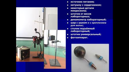 Для этого мы собрали своими руками следующую установку, состоящую из лабораторного штатива, динамометра, фотоаппарата, катушки с сердечником, на которую подавался ток, штатив от весов лабораторных, на одно плечо которого с помощью специального приспособления подвешивался металлический шарик с человеческим волосом. За счет магнитного поля, создаваемого катушкой, шарик притягивался и волос разрывался.Разрывная нагрузка фиксировалась с помощью лабораторного динамометра. Все это фиксировалось на фотоаппарат, который позволяет делать покадровый просмотр.
